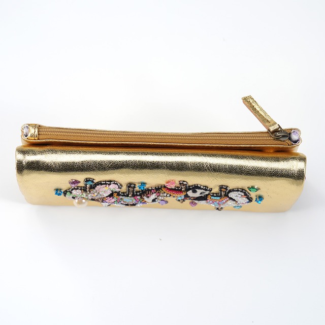 It is a unique long wallet made by embroidering the print like a coloring book. Each piece is embroidered by hand very minutely and carefully on a soft sheep leather. There are coin pockets inside and outside of wallet and lots of card pkts are are also there making the storing capacity excellent.