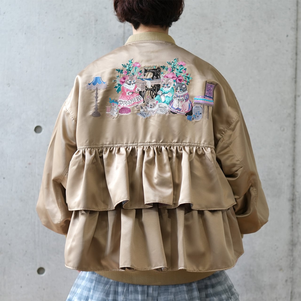 【予約】刺繍フリルジャケット“Crafting Cats Frill Jacket” (Beige)