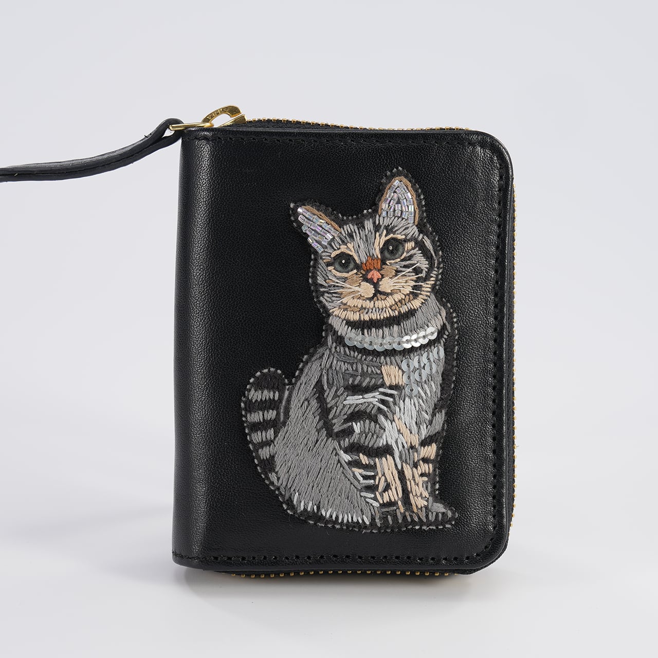 This adorable mini wallet features charming cat embroidery.