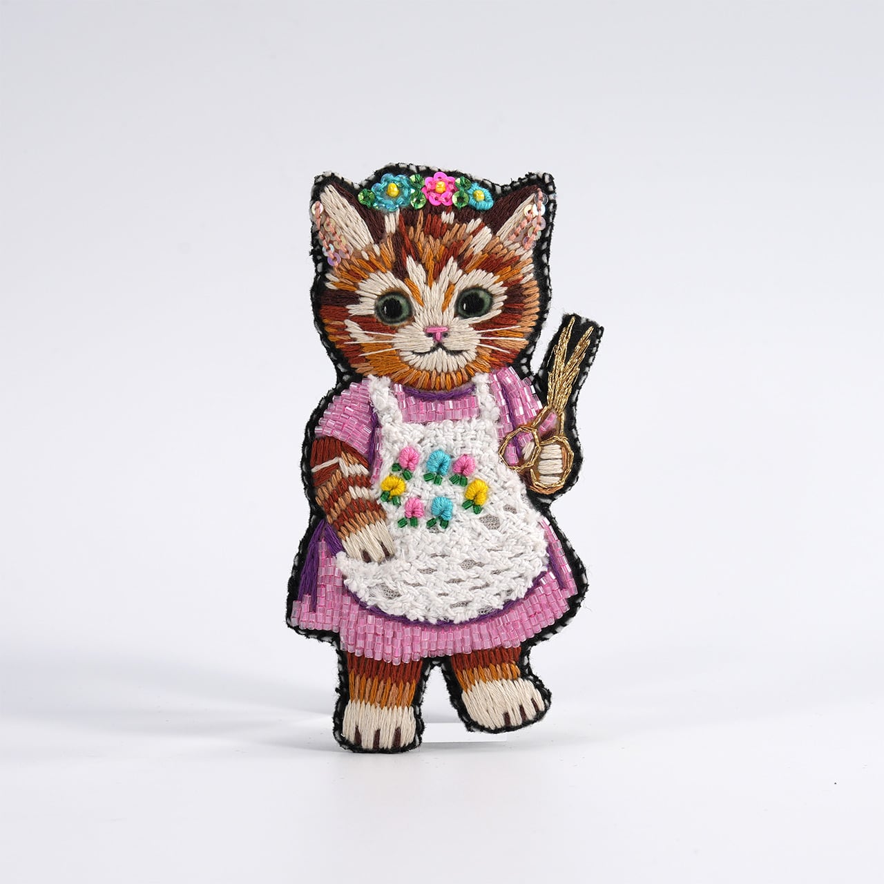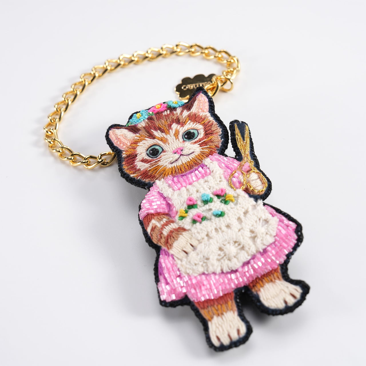 刺繍チャームブローチ Craft Club: Scissor Cat