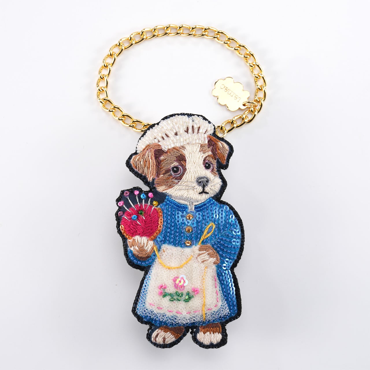 刺繍で物語の主人公や動物を表現しているユニークなチャーム。バッグチャーム金具は取り外しできるので、ブローチとしてもお使い頂けます。