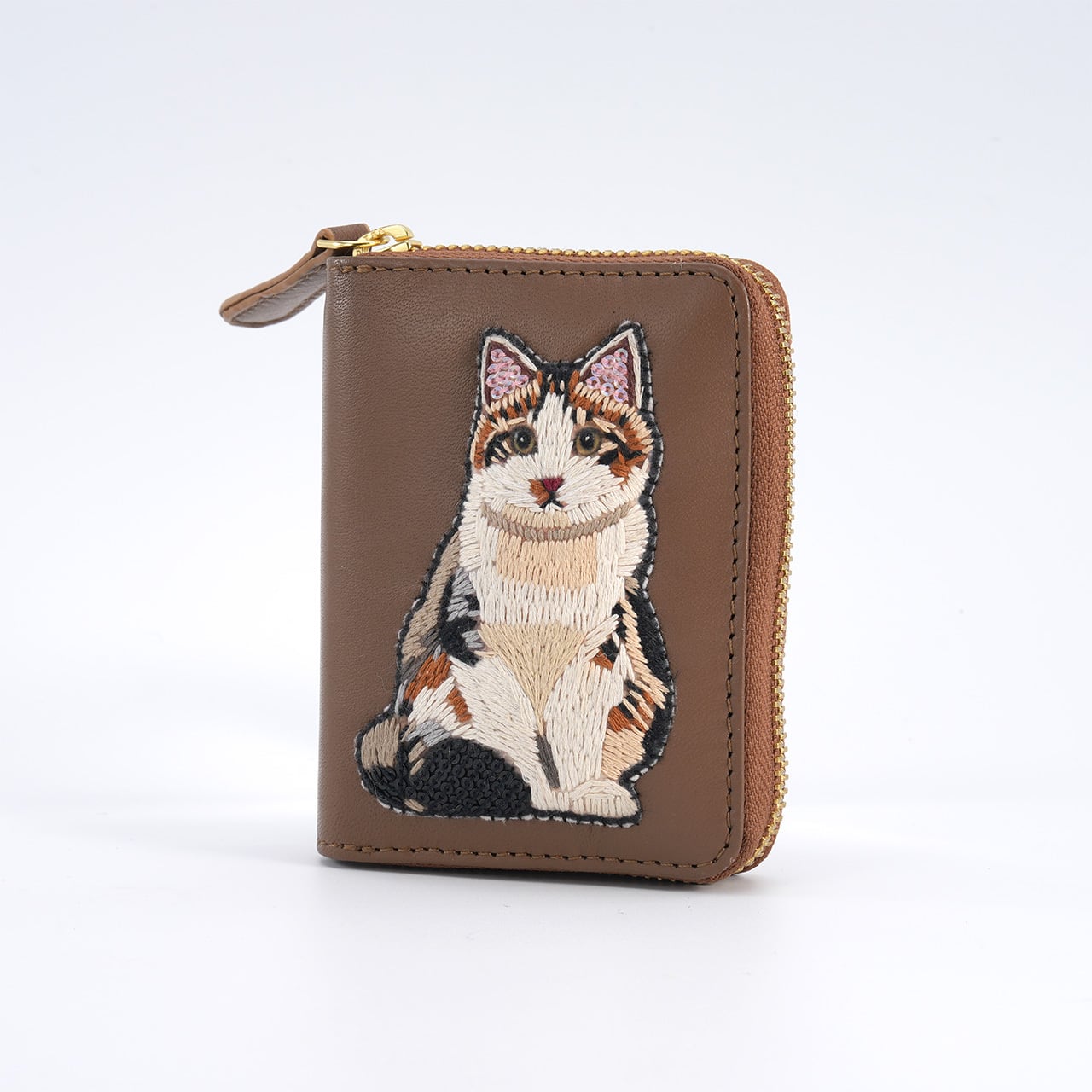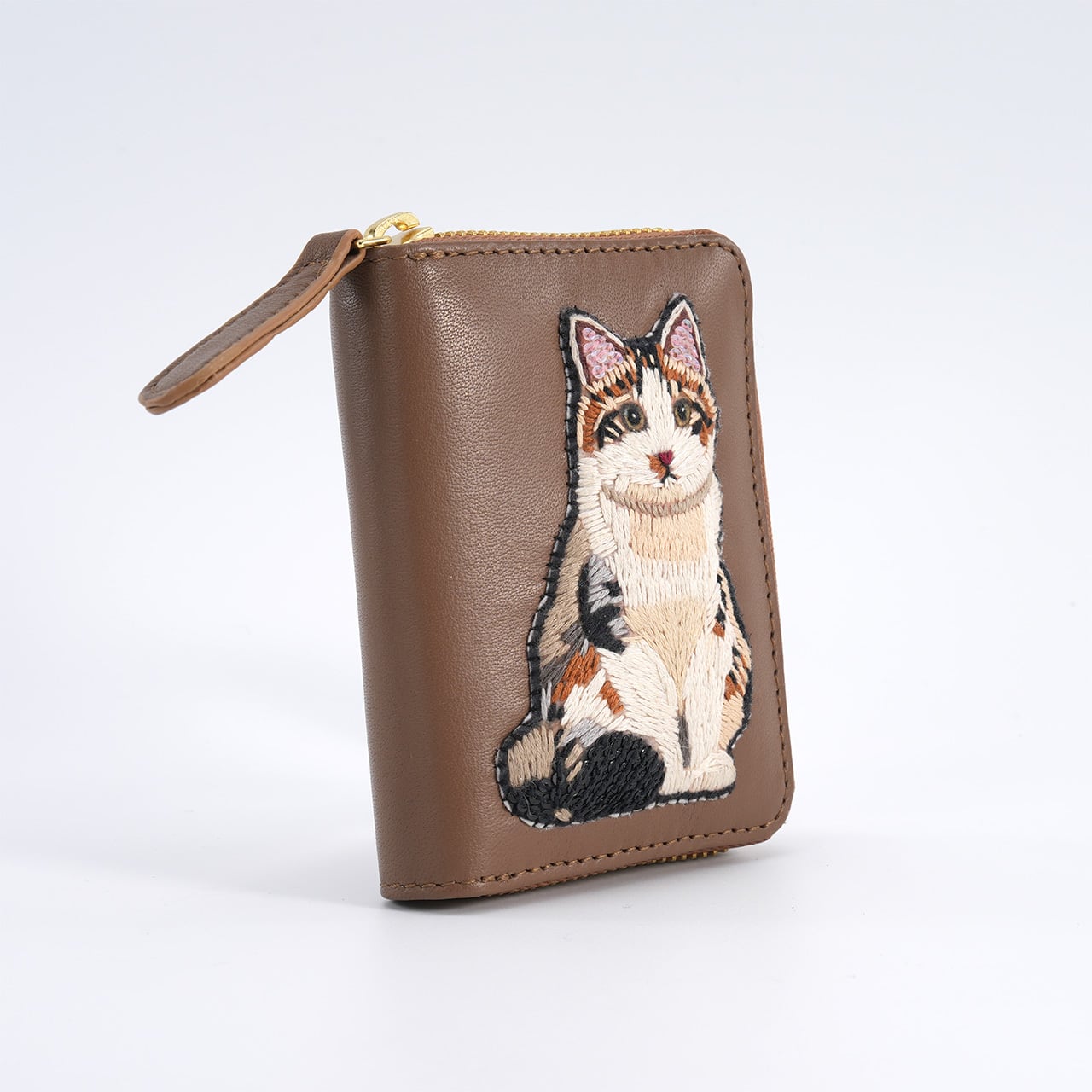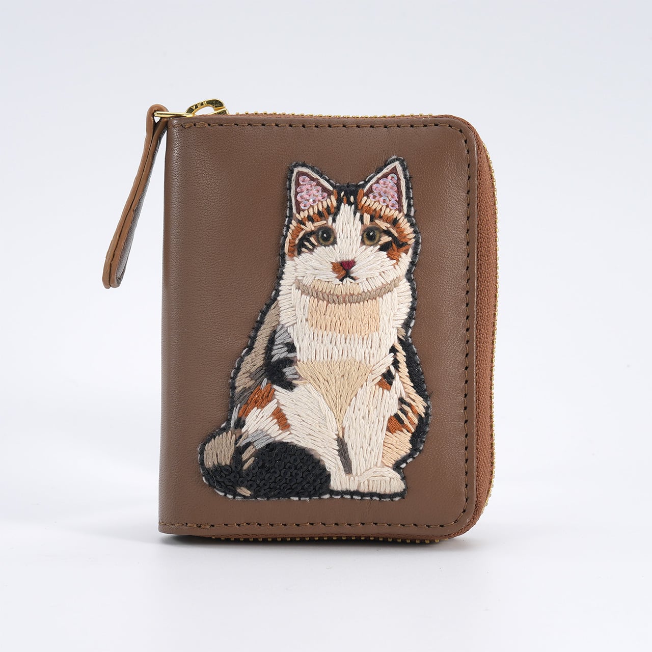 This adorable mini wallet features charming cat embroidery.