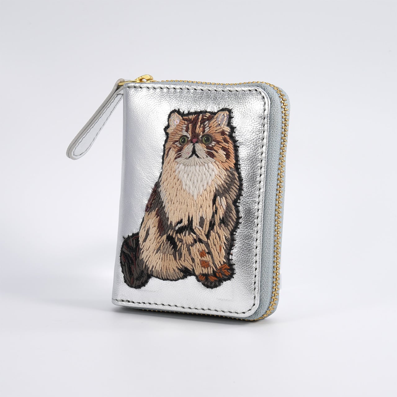 This adorable mini wallet features charming cat embroidery.