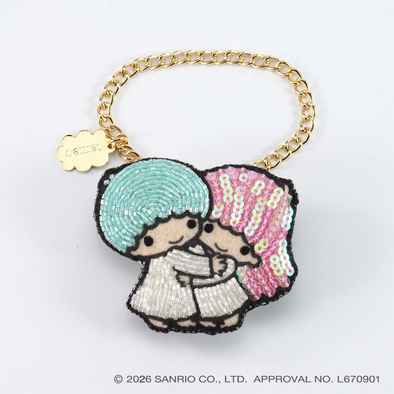 サンリオキャラクターズをモチーフにした刺繍チャームブローチ。