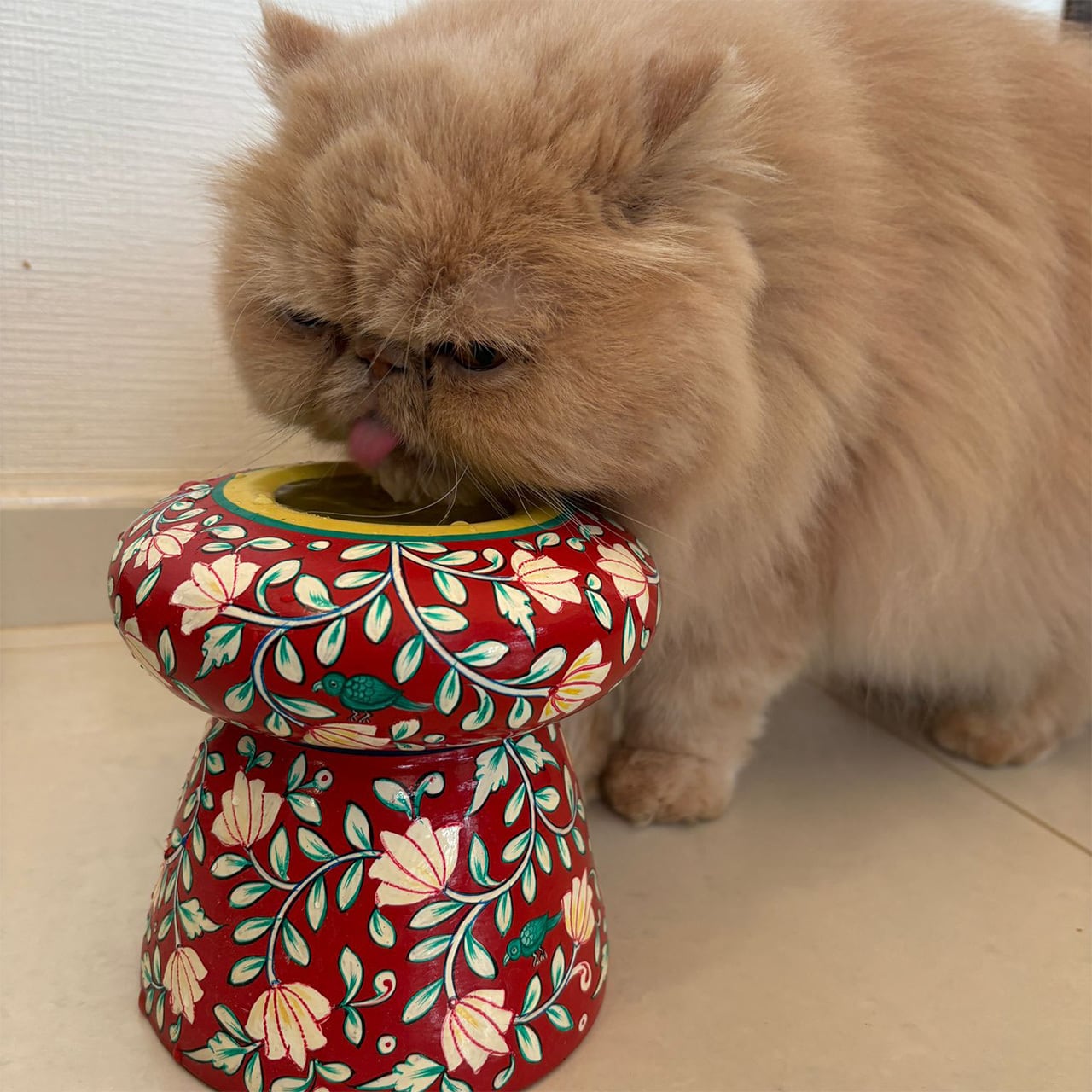 程よい高さのあるデザインで、床に直接置くタイプに比べて首を大きくかがめにくく、自然な姿勢でお水を飲みやすい設計です。