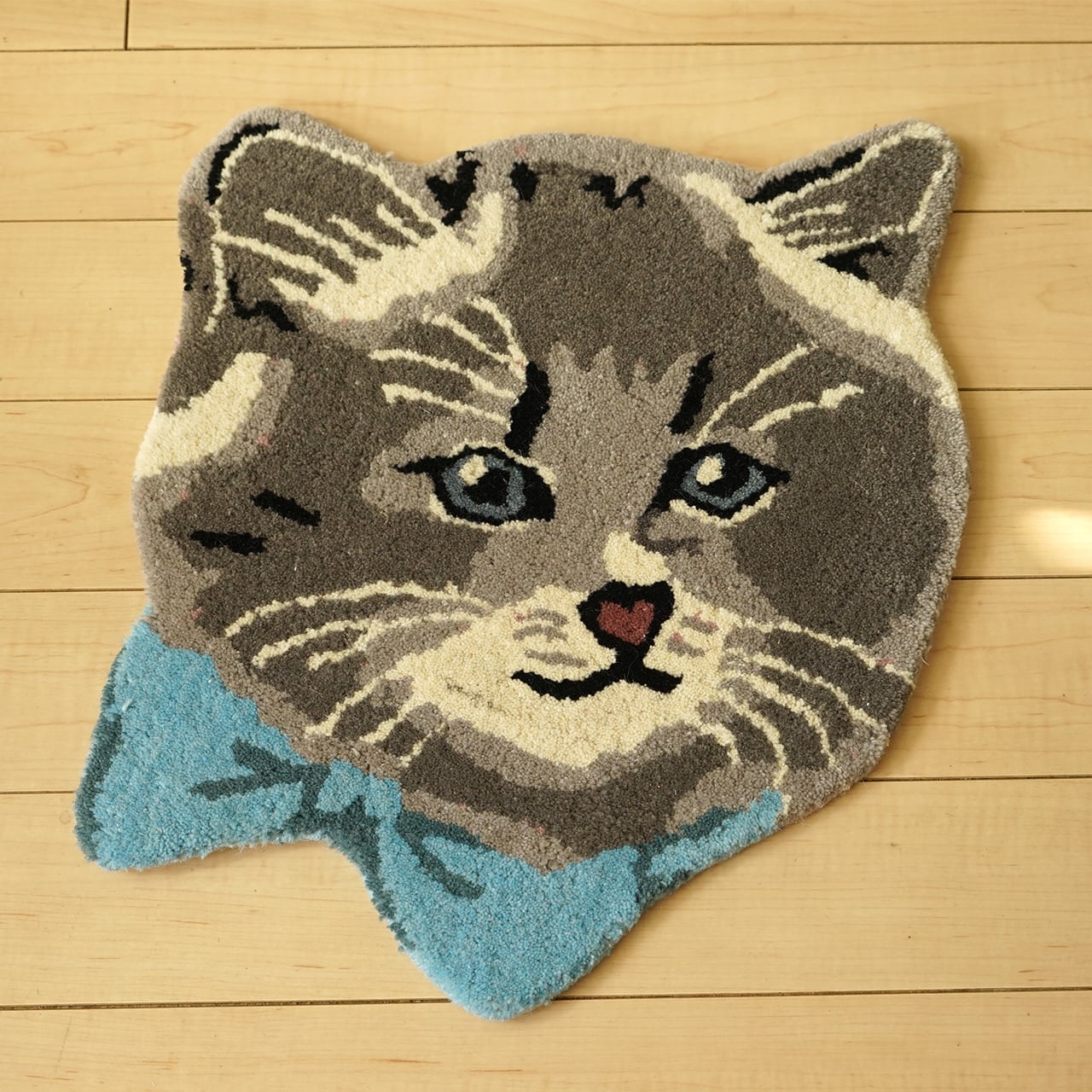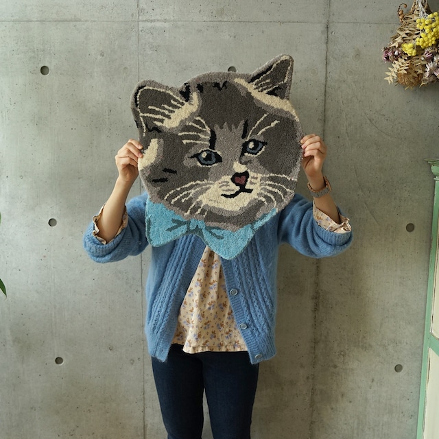 ラグマット Antique-style cat face (Gray)