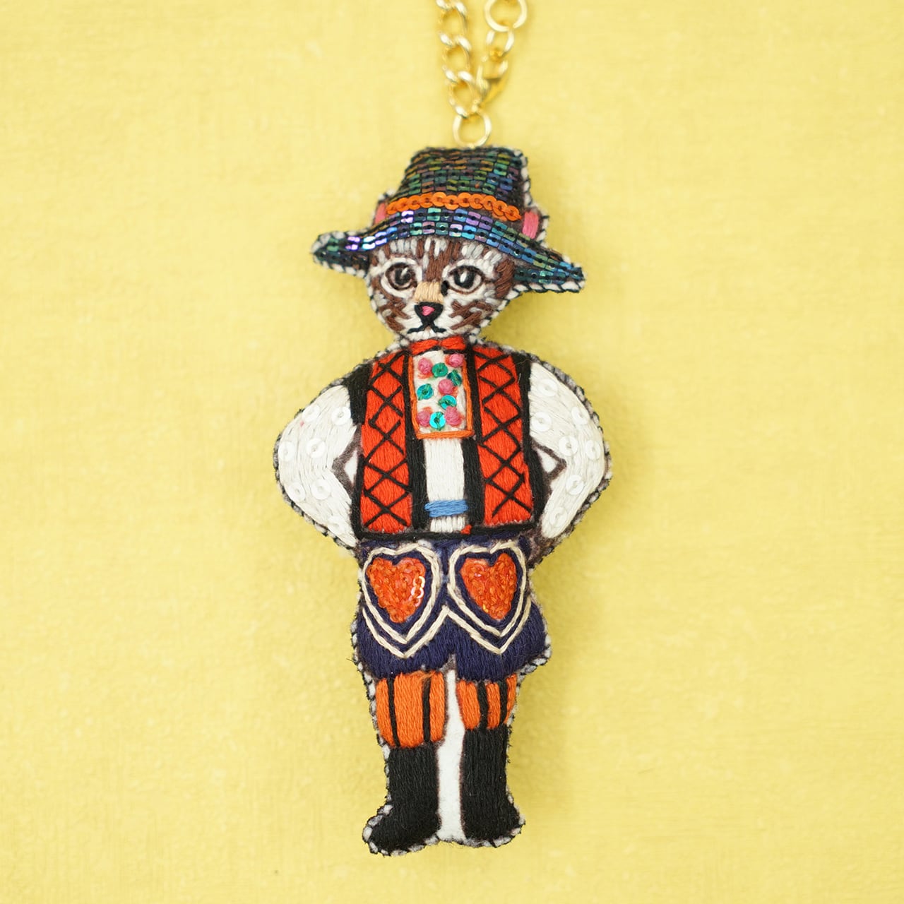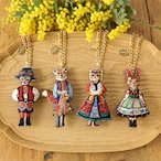 民族衣装を身につけた動物がモチーフのユニークなチャーム。チェーン部分は取り外しできるので、ブローチとしてもお使い頂けます。