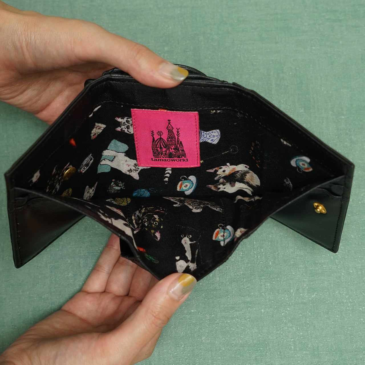 ねこミニ財布 Tuxedo cat / Metallic Black