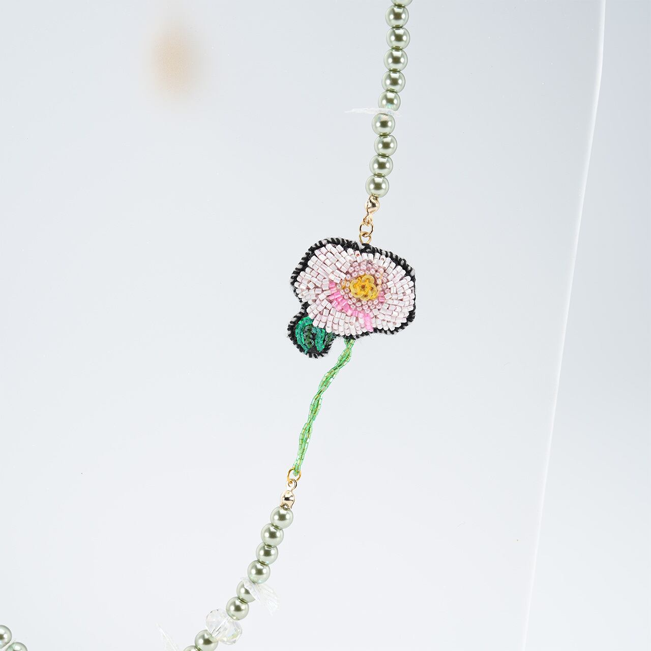 竿部分のビーズはくすみグリーンのパールビーズを使用。
